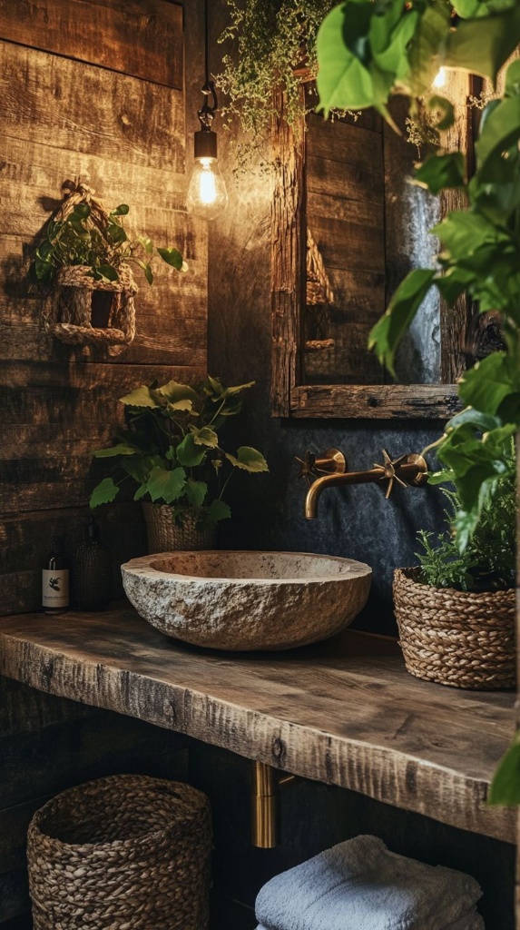 2. The Wabi-Sabi Bathroom: Raw Wood & Stone Sanctuary